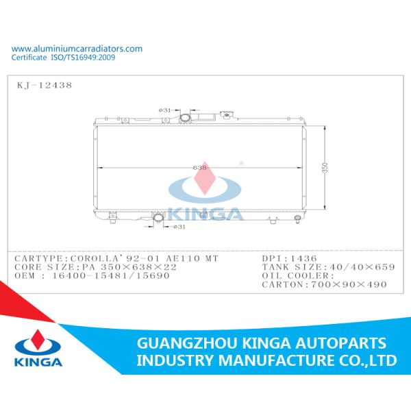 Plastic Cover Toyota Radiator Corolla AE110 MT 1992-2001Auto Radiator Repair Images |
